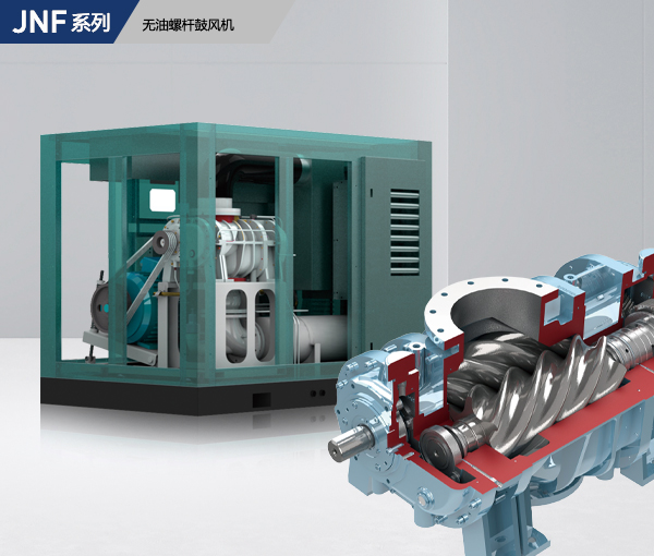 開山無油螺桿鼓風機,采用自主研發技術進行開發的高效螺桿轉子型線,主機陰陽轉子依靠一對高精密度同步齒輪嚙合運行,軸承與壓縮腔體之間進行密封。壓縮腔體中無油,為客戶提供潔凈無油的空氣。